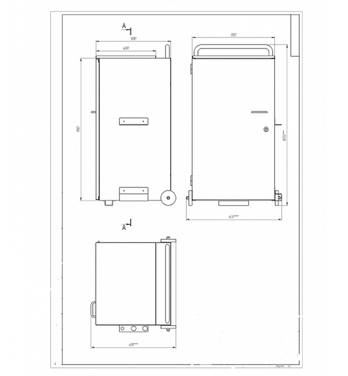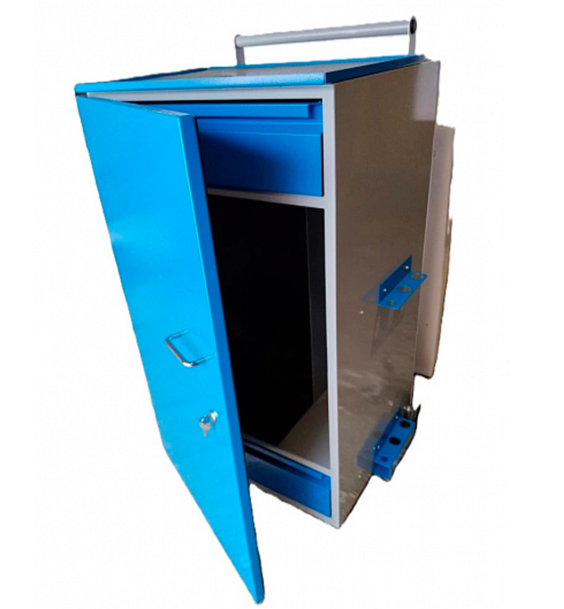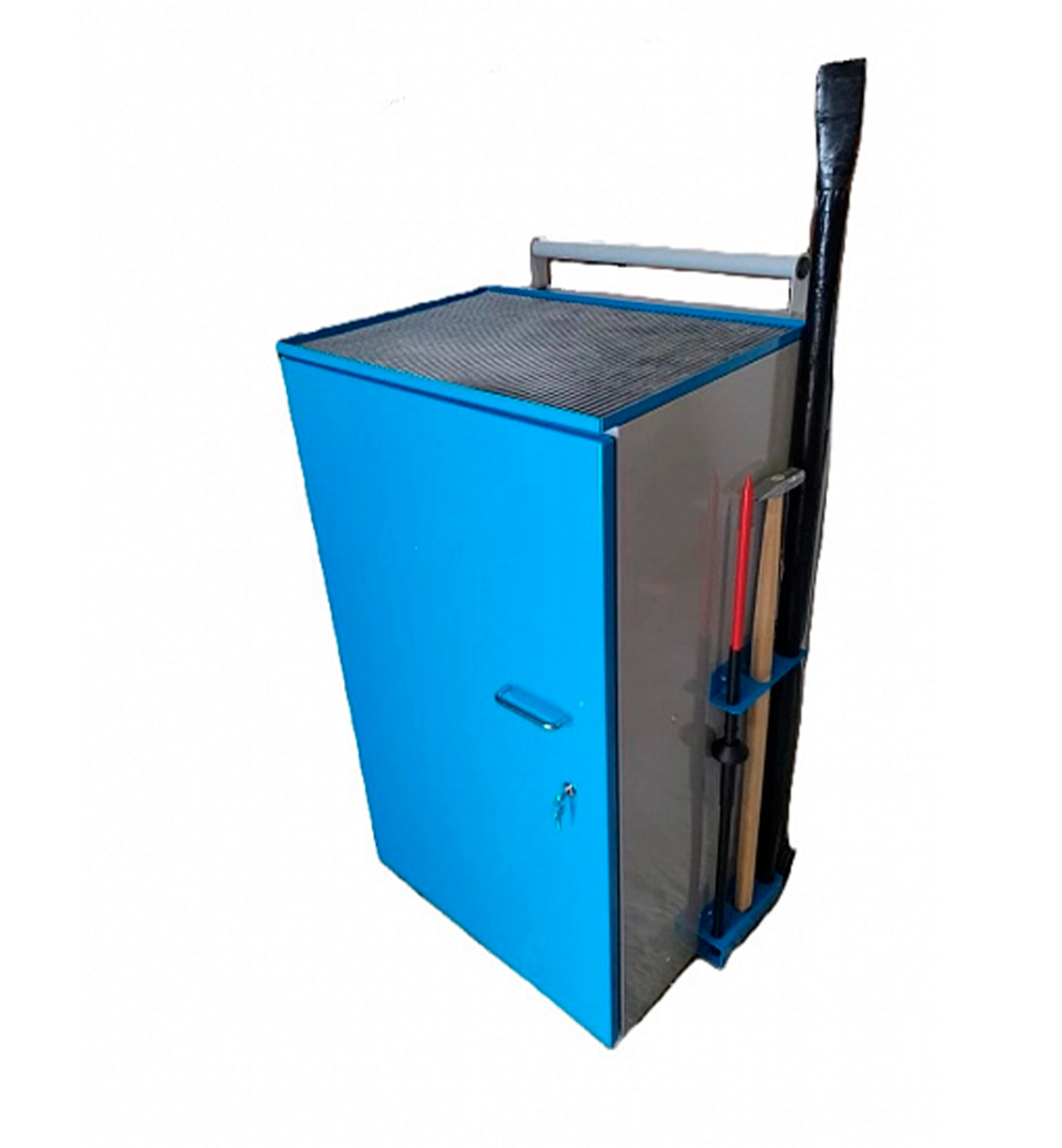Комплект инструмента начальника КТП состоит из передвижного шкафа с двумя ящиками и тремя нишами.